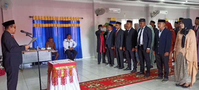 Pelantikan dan pengambilan sumpah anggota PPK Kecamatan se Kabupaten Butur sesuai Surat keputusan KPU Butur nomor 221 tahun 2024 tentang penetapan dan pengangkatan anggota PPK Kecamatan yang dilaksanakan di Aula Hotel Sara’ea, Kamis (16/5/2024).