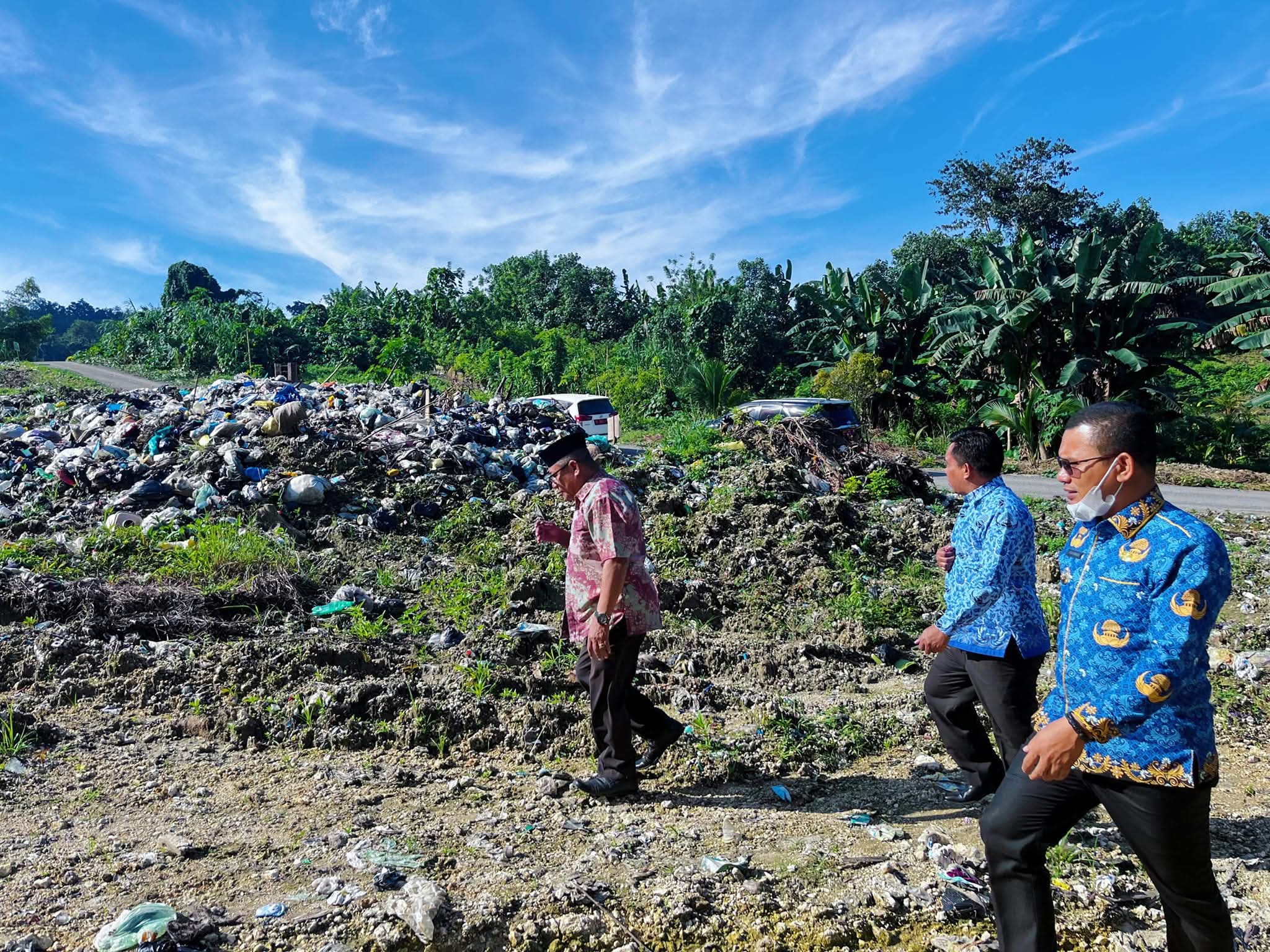 Wakil Bupati Butur Rahman bersama Kepala Dinas Lingkungan Hidup Buton Utara dan plt Kepala Dinas PUPR Buton Utara meninjau kondisi Tempat Pembuangan Akhir (TPA) di Desa EeLahaji, Kamis (17/7/2025).