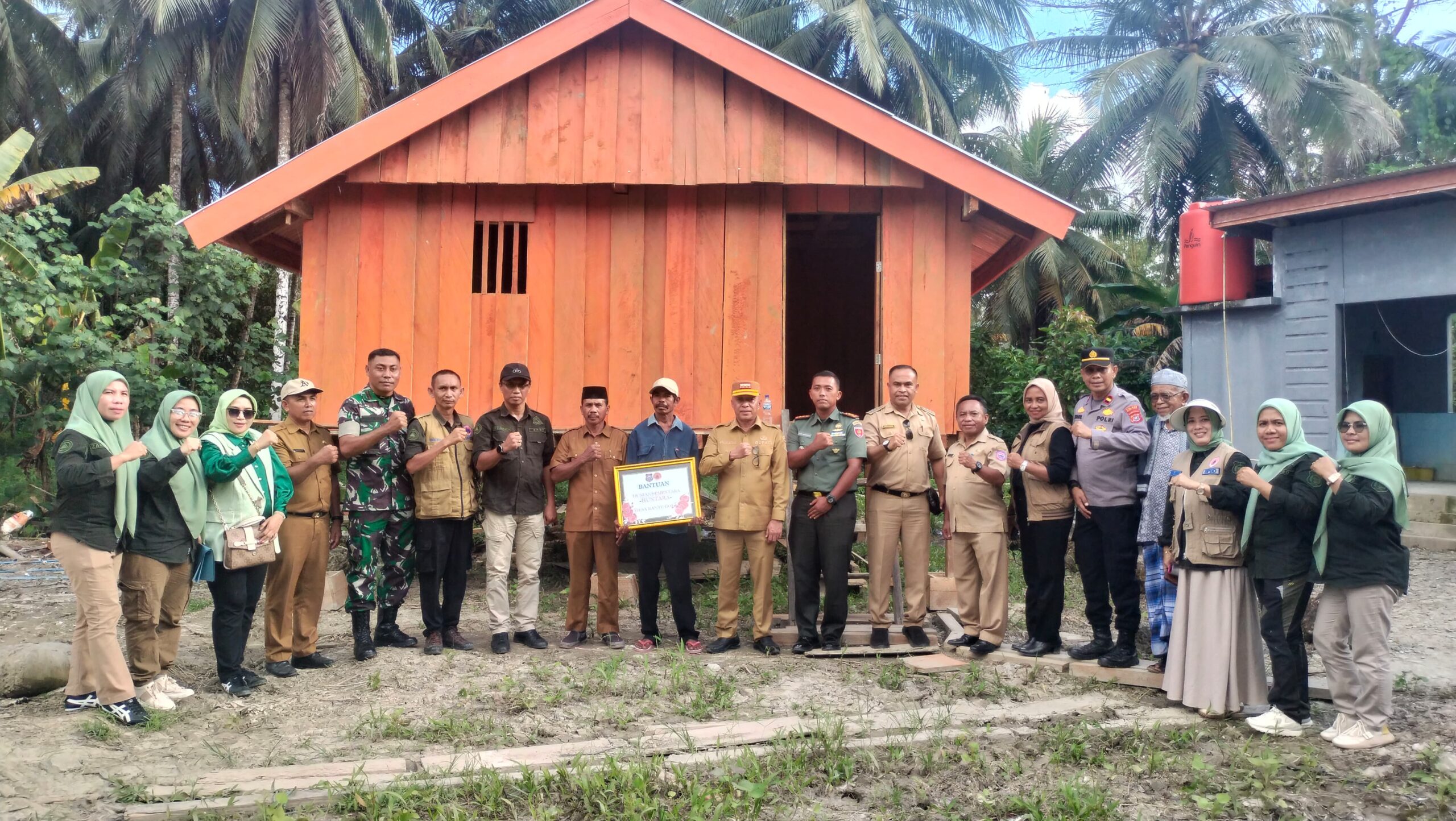 Bupati Butur Afirudin Mathara didampingi Dandim 1429 Butur Letkol Inf. Acuk Andrianto, SE, bersama dinas terkait dan Tripika Bonegunu, menyerahkan Bantuan Hunian Sementara (Huntara) kepada salah satu KK atas nama Hamsir yang rumahnya hanyut terbawa banjir.