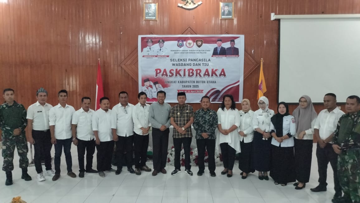 REFERENSISULTRA.COM – Bupati Buton Utara Afirudin Mathara, membuka tahapan seleksi pembentukan Pasukan Pengibar Bendera (Paskibraka) tingkat Kabupaten Buton Utara (Butur) tahun 2025, di aula Bappeda. Jumat, (11/4/2025)