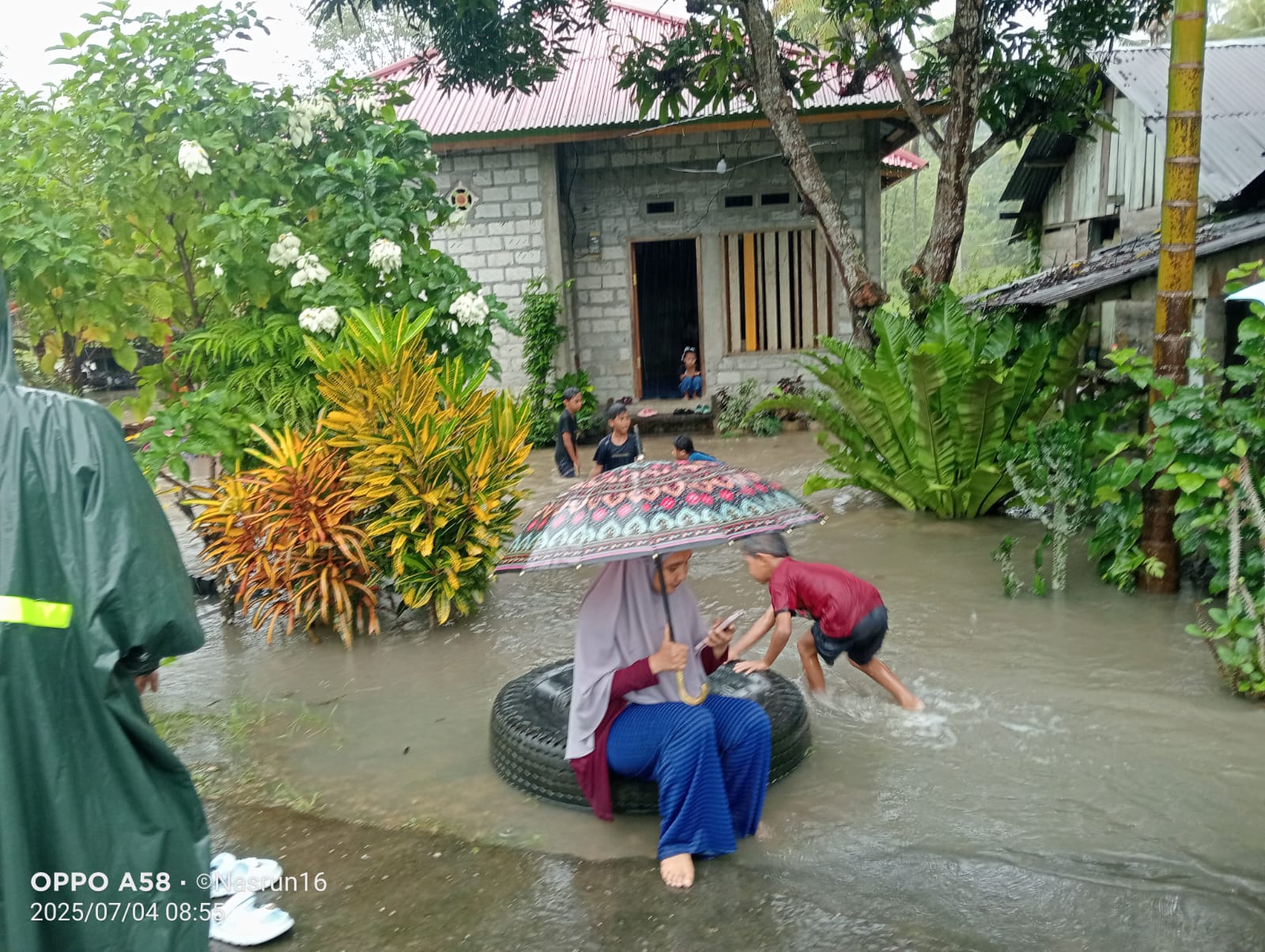 REFERENSISULTRA.COM. Hujan deras dengan intensitas sedang dan tinggi mengguyur wilayah Kabupaten Buton Utara (Butur) sajak sepekan terakhir mengakibatkan ratusan rumah warga terendam banjir.