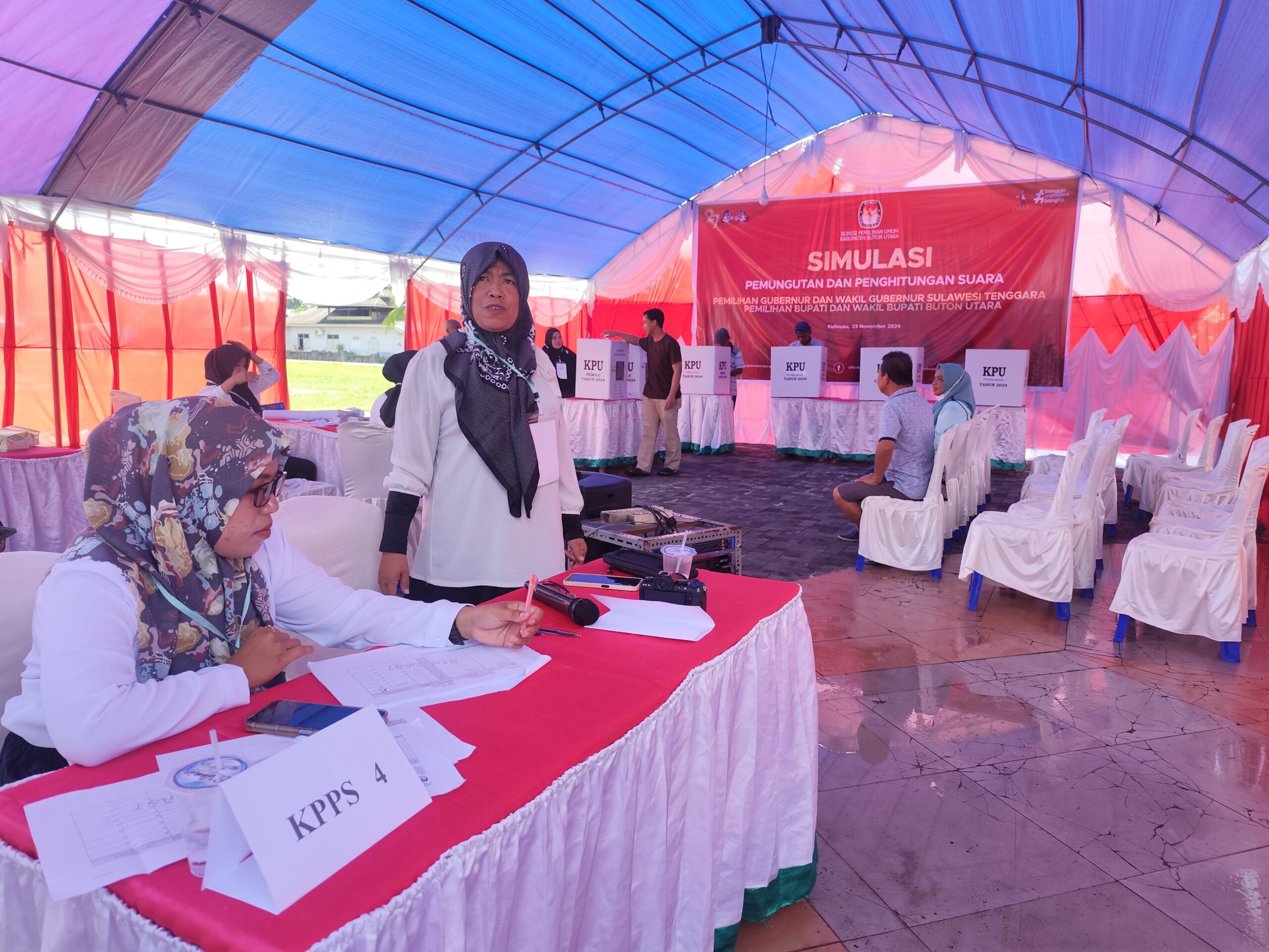 Simulasi ini, mengambil percontohan dari TPS Simulasi di Kelurahan Bangkudu Kecamatan Kulisusu yang dilakukan oleh petugas dan pemilih yang rill yang merupakan warga sekitar.