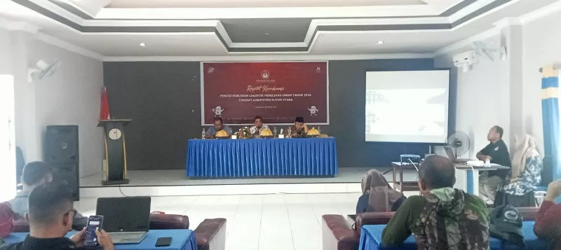 REFERENSISULTRA.COM – Komisi Pemilihan Umum (KPU) Kabupaten Buton Utara (Butur), menggelar rapat koordinasi terkait dengan pendistribusian logistik pemilu, bertempat di Aula Hotel Sara’ea Kecamatan Kulisusu, Jumat (9/2/2024).
