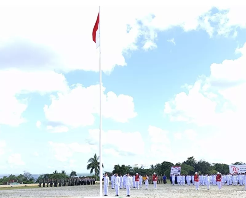 REFERENSISULTRA.COM – Peringatan detik-detik proklamasi Hari Ulang Tahun (HUT) Republik Indonesia (RI) yang ke 79 Tahun di Kabupaten Buton Utara (Butur) berlangsung khidmat di pelataran Gedung Islamic Center Kulisusu.
