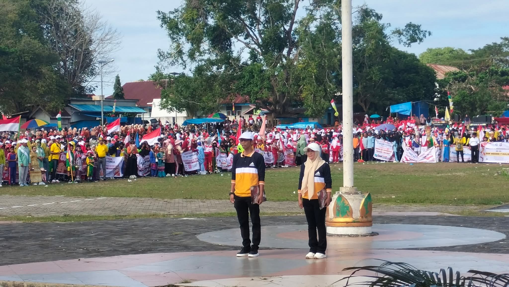 REFERENSISULTRA.COM, Antusias ribuan peserta kontingen padati Lapangan Raja Jin Kecamatan Kulisusu, Kabupaten Buton Utara, Sulawesi tenggara, dalam rangka menyambut kemerdekaan Republik Indonesia ke 80 Tahun.