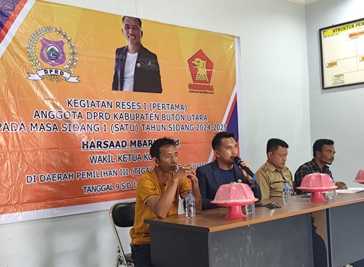 Anggota DPRD Butur, Harsaad Mbaru. Melakukan reses masa sidang pertama tahun sidang 2024-2025, ia turun menyambangi daerah konstituennya di Desa Tri Wacu-wacu, Kecamatan Kulisusu, Selasa (11/2/2025).