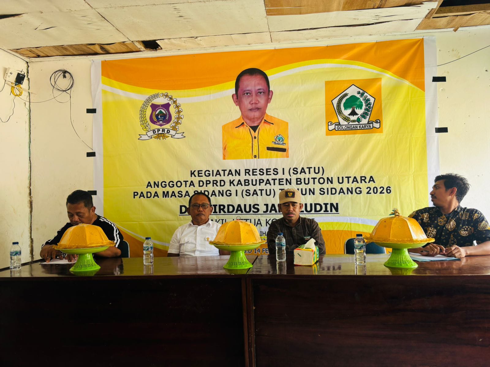 REFERENSISULTRA.COM, Kegiatan reses yang dilaksanakan Anggota DPRD Kabupaten Buton Utara (Butur) dari Fraksi Partai Golkar, Firdaus Jamaludin, di Desa Jampaka menjadi ruang dialog terbuka antara wakil rakyat dan masyarakat, yang berlangsung di Balai Desa Jampaka, Jumat (13/2/2026).