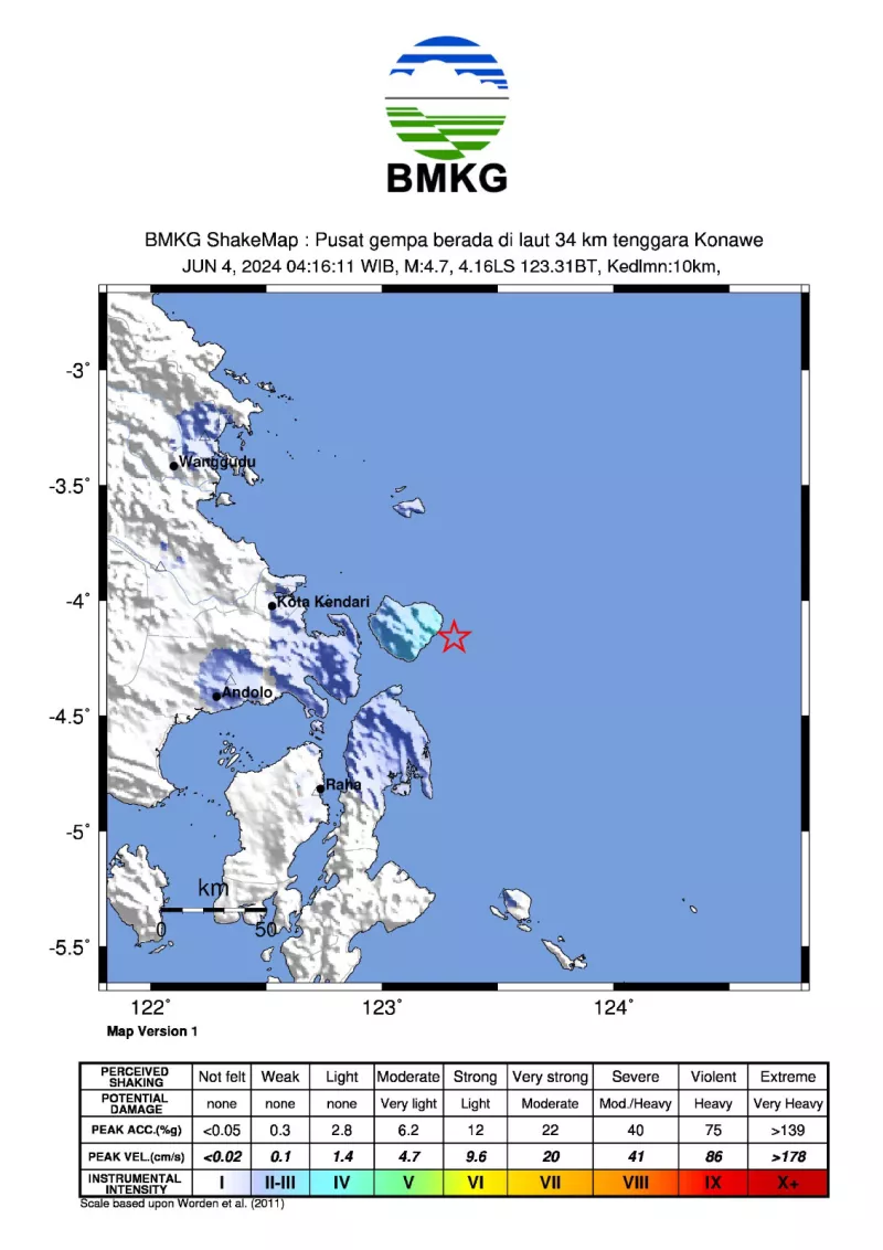Gempa 4.7 M di Konawe Kepulauan Dirasakan Hingga di Buton Utara